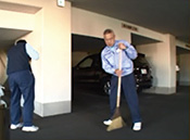 緑化業務では、構内の清掃を行い、お客さまが気持ち良く働ける環境を作っています。